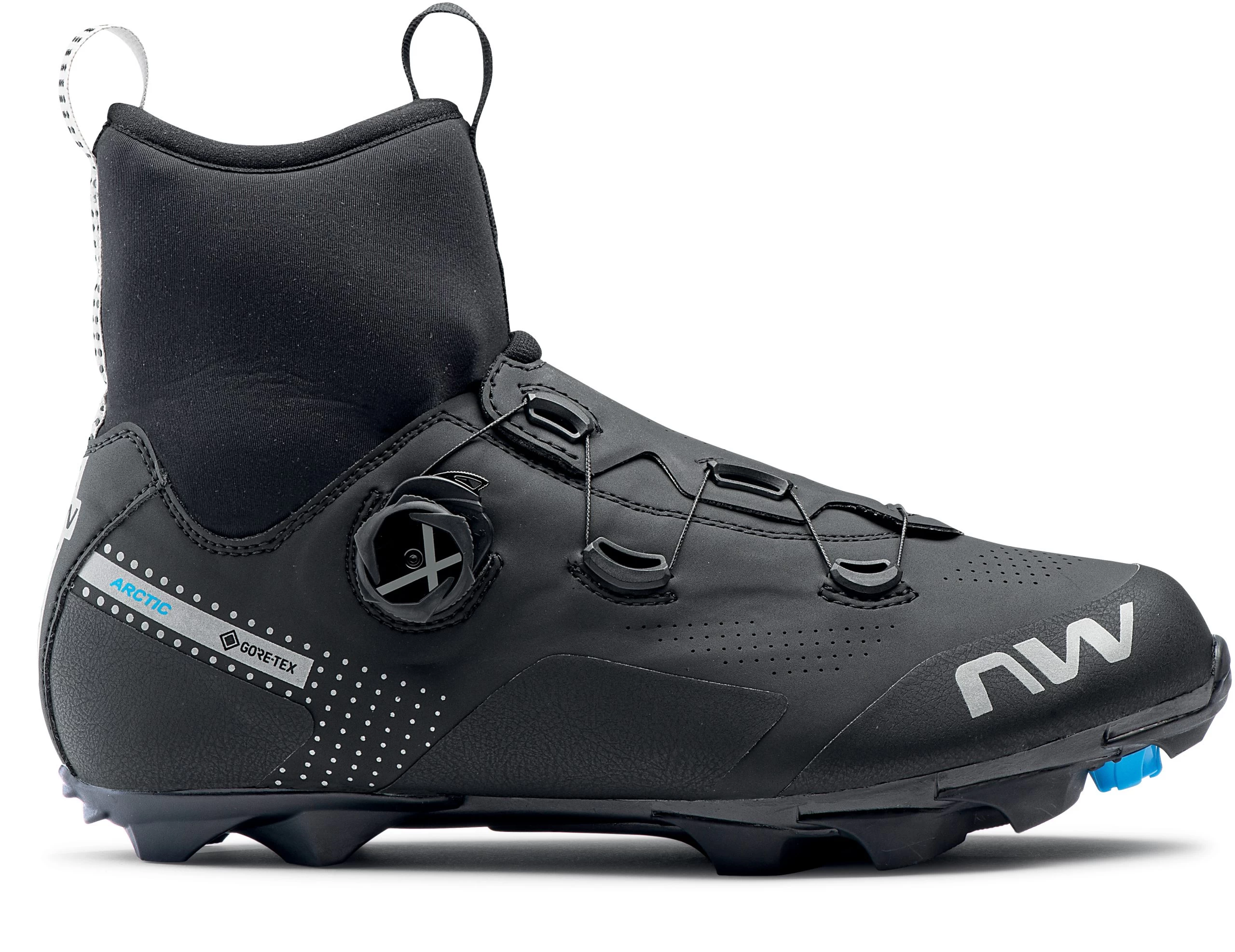 Pánske XC tretry Northwave s karbónovou podrážkou Jaws s tvrdosťou 8/15. Vrchná časť je vyrobená technológiou overlap na obmedzenie nežiaducich tlakov a tiež na ideálny prenos síl. Uťahovanie rýchlosystémom SLW2 s možnosťou jemného nastavenia. Neoprénový členkový úplet Easyfit Climaflex s Gore-Tex Rattler membránou neobmedzuje pohyb a chráni pred nepriaznivými vplyvmi. Vnútorná 4-vrstvová vložka Arctic 4L (kombinácia EVA materiáu a hliníka) sa stará o izoláciu telesného tepla, reflexné detaily po obvode pre lepšiu viditeľnosť. Hmotnosť 445g.
