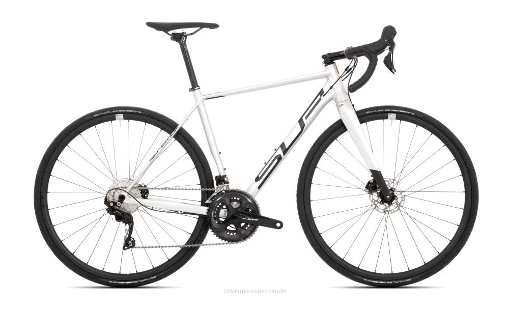 Cestný bicykel s rámom z trikrát zoslabovanej zliatiny hliníka, ktorý je vyvinutý pre vyvážený pomer rýchlosti a pohodlia. O pohon sa na tomto biku postará mechanická sada Shimano 105 2×11. Bezpečie zaisťujú hydraulické kotúčové brzdy s 140 mm kotúčmi, ktoré vás zastavia aj za zlého počasia úplne spoľahlivo. Bicykel je osadený 30 mm plášťom Schwalbe. Vďaka priestupnosti rámu až 40 mm plášťu je však bicykel možné používať prakticky celoročne.